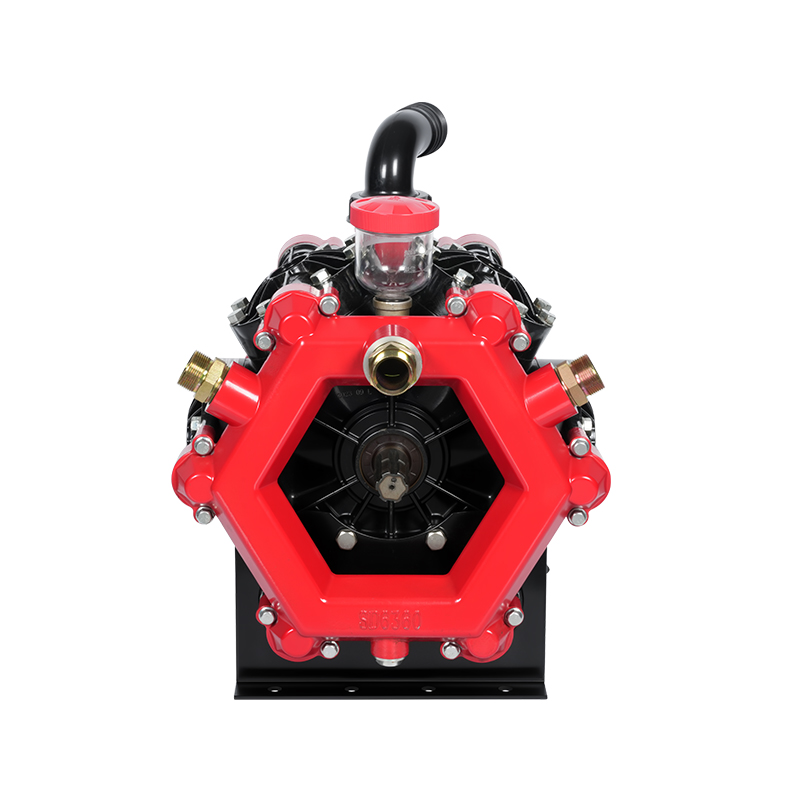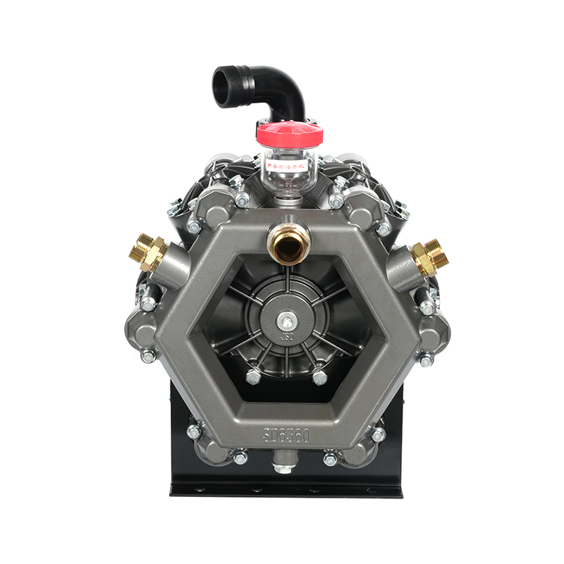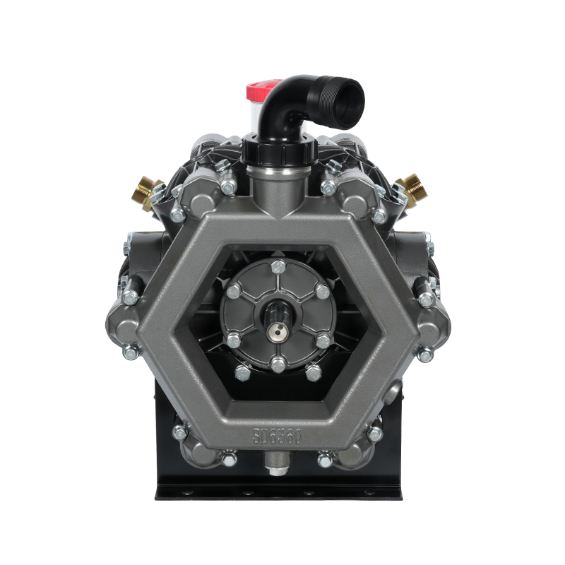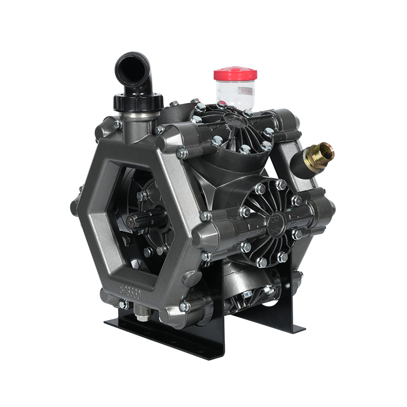 The MB6360/2.5 agricultural diaphragm pump is a compact and efficient pumping solution designed for farm and irrigation applications. It utilizes a double-diaphragm system to provide stable flow and reliable pressure for spraying pesticides, fertilizers, and water. With a flow rate of 360 liters per cycle, the pump can handle a wide range of agricultural liquids without compromising performance. Its corrosion-resistant materials ensure durability despite exposure to chemicals and outdoor environments. The MB6360/2.5 is easy to maintain, featuring replaceable diaphragms and valves, reducing downtime and extending its service life. Its lightweight and adaptable design allows it to be mounted on tractors, sprayers, or other agricultural machinery to meet diverse agricultural needs. This model combines durability, efficiency, and ease of use, helping farmers achieve precise spraying and effective crop protection while minimizing waste and operating costs.
